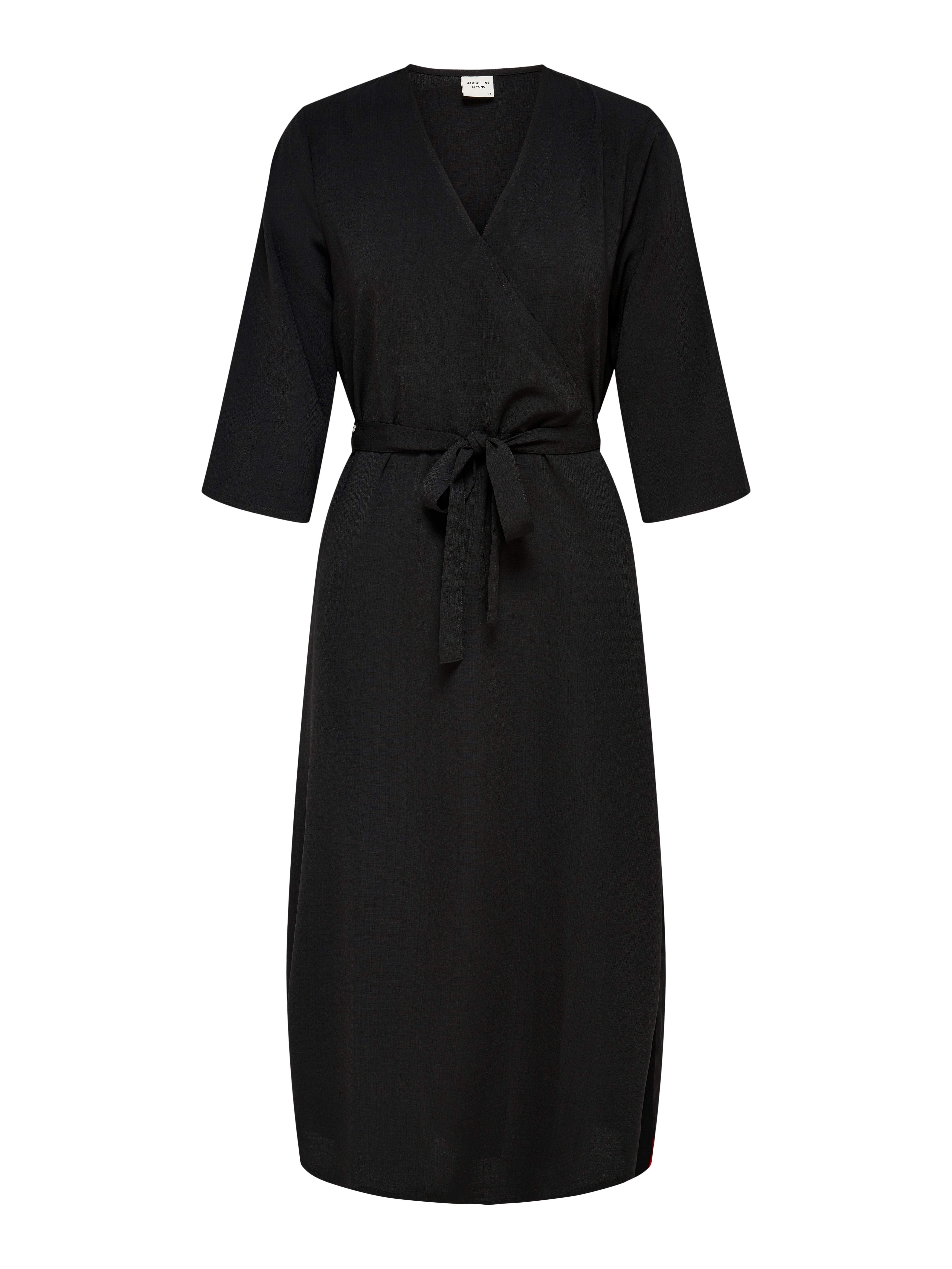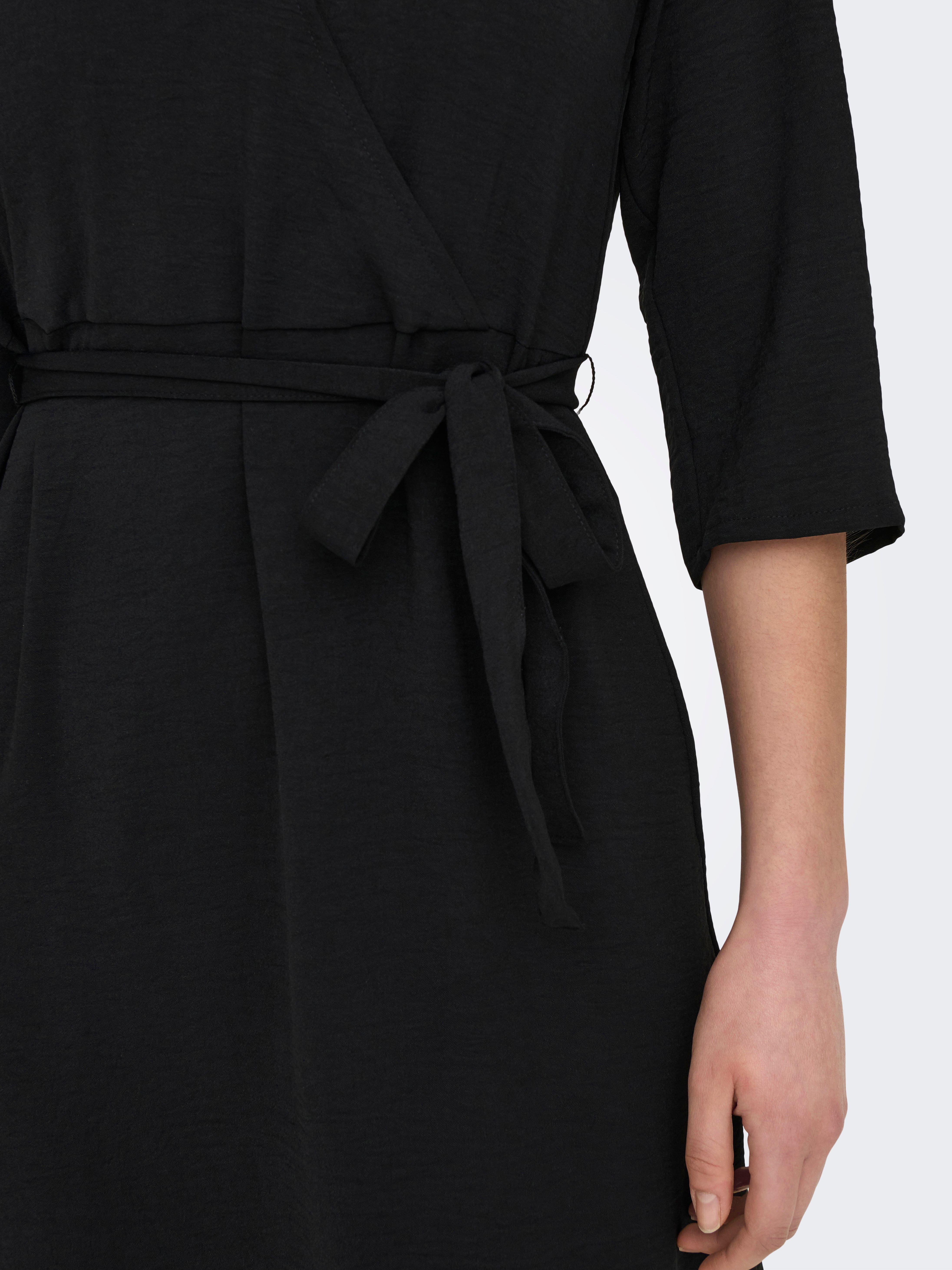 Regular Fit V Neck Wide Sleeves Short Dress Black Only